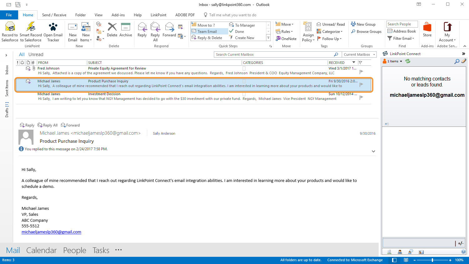 LinkPoint Connect users can create new Contacts within Outlook for Contacts users refer to but that may not be needed in Salesforce. In this section, you will learn how to create Outlook contacts using LinkPoint Connect.
