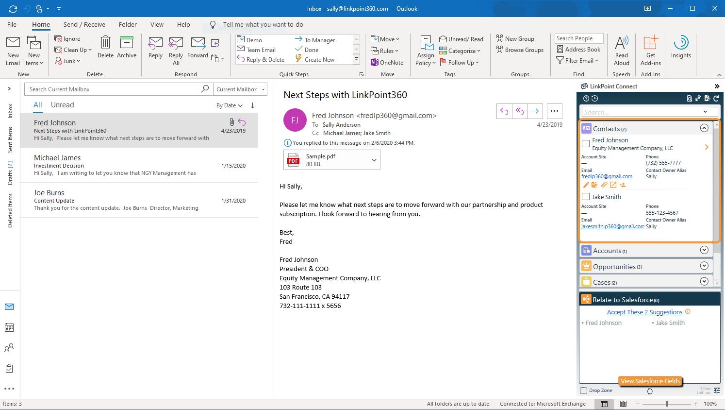 Update existing accounts, contacts, and leads in Salesforce with minimal manual data entry. Users can identify field-level data differences and make updates using email signatures with Active Update for SnapForms. Changes are saved to Salesforce but made from Outlook. Active Update also works as a duplicate checker, identifying matching records and prompting users to either create a new record or update an existing record. Active Update functionality works the same for all available record types.