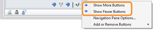 Select the option to Show More Buttons to add to the list of items available in the Navigation Pane. Select Show Fewer Buttons to reduce the number of items available.