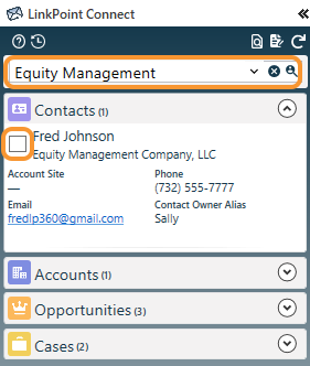 Search for relevant Salesforce records in the Side Panel. Select the Relate to Salesforce checkbox next to records in the Search Results.