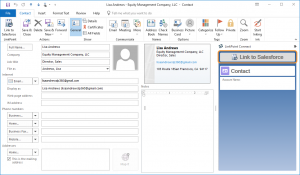 Click the Save & Close button to save the Contact in Outlook. LinkPoint Connect will sync the Contact to Salesforce during the next scheduled or manual sync depending on your settings.