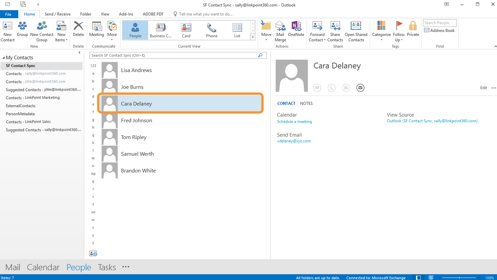 Users can copy or move existing Exchange contacts to the SF Contact Sync folder to sync the items to Salesforce. However, if you add a Contact with a specific email address (i.e. [email protected]) from Exchange to the SF Contact Sync folder, and you already have a Contact that synced from Salesforce to Exchange with the same email address (i.e. [email protected]), you will sync two instances of the contact to Salesforce the next time the sync runs. The one item will be the original from Salesforce and the other will become a Private Contact in Salesforce.
